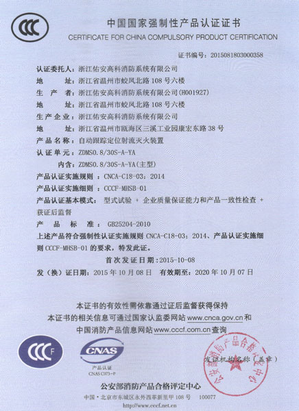 產(chǎn)品執(zhí)行標(biāo)準(zhǔn)號:GB25204-2010 額定流量:30L/s 額定工作壓力:0.8MPa 最大保護(hù)半徑:55m 定位時間:≤60s 水平回轉(zhuǎn)角:360° 俯仰角是小范圍:-90°~+70°