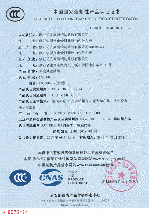 產(chǎn)品執(zhí)行標(biāo)準(zhǔn):GB19156-2003、GB19157-2003 噴射壓力:1.0MPa 流量:80L/s 射程:82 m 最大噴霧角:≥90° 最小俯角:-85° 最大仰角:+90° 水平回轉(zhuǎn)角:360° 有線控制距離:200 m 無線控制距離:150 m